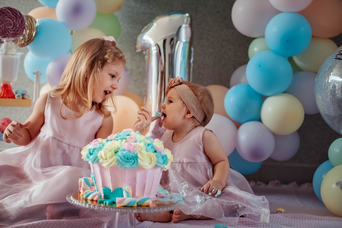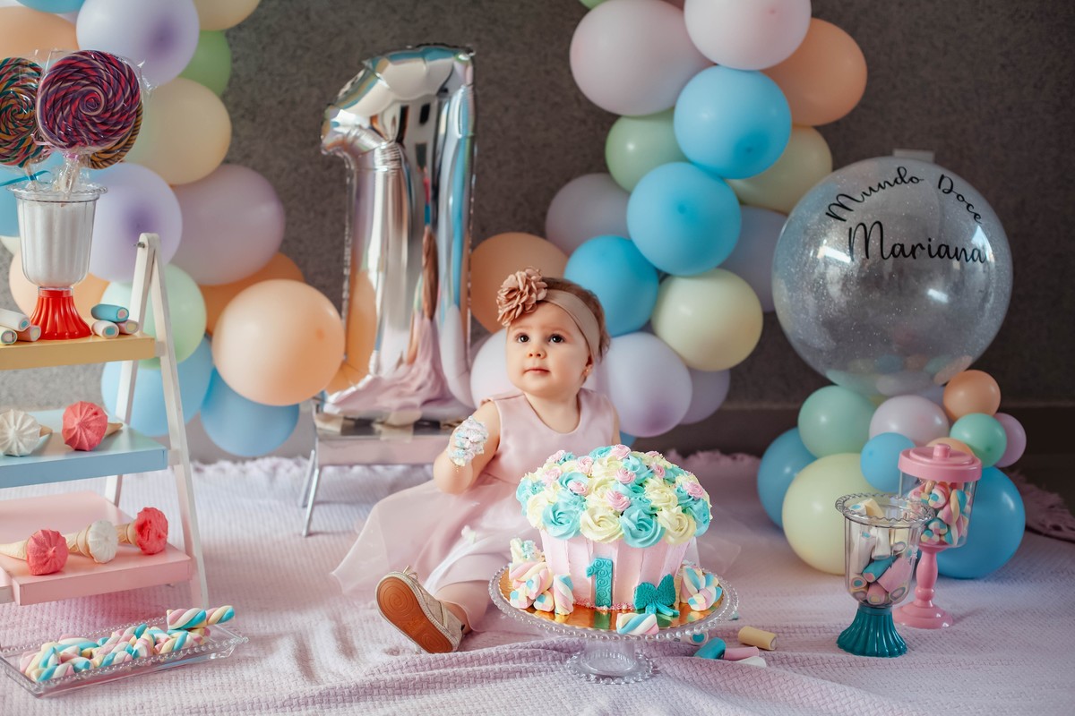 Smash the cake para comemorar o primeiro aninho.